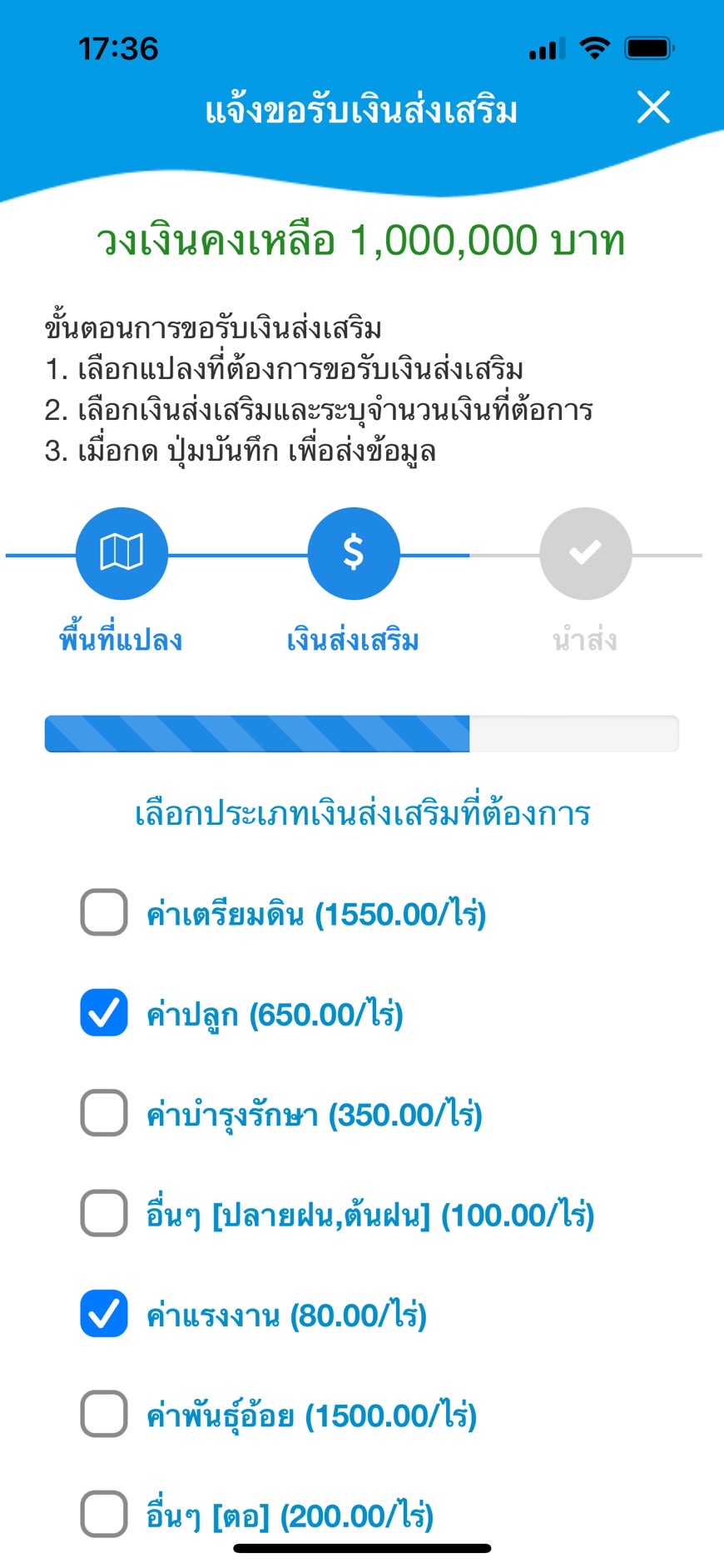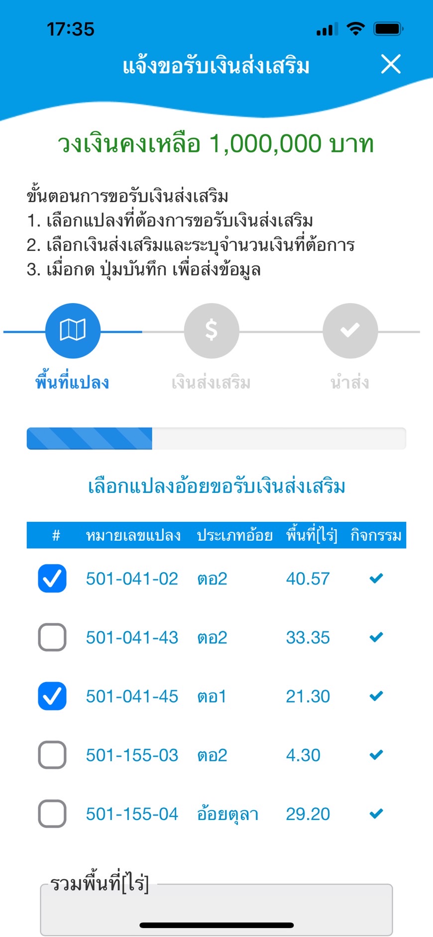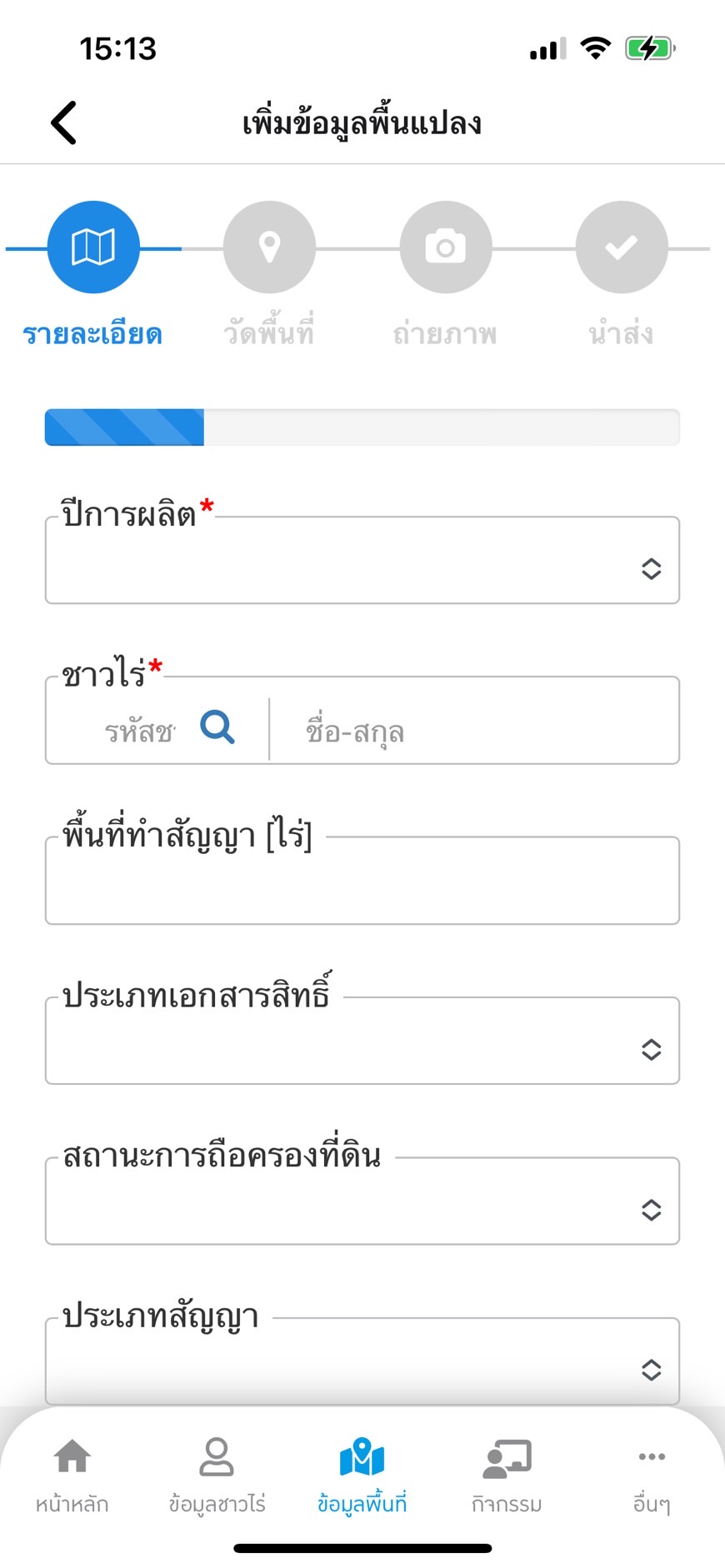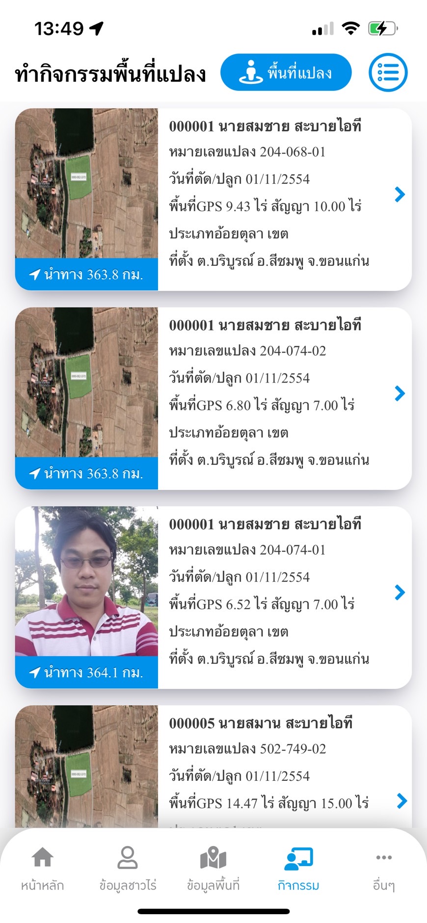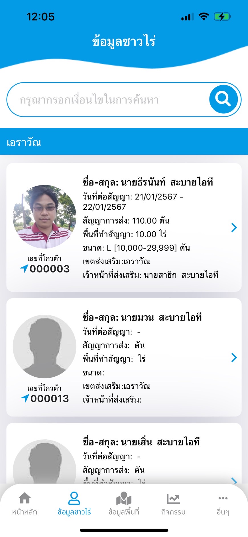 กรณีชาวไร่ ใช้งานโปรแกรมจะแสดงเฉพาะข้อมูลของตนเองเท่านั้น |