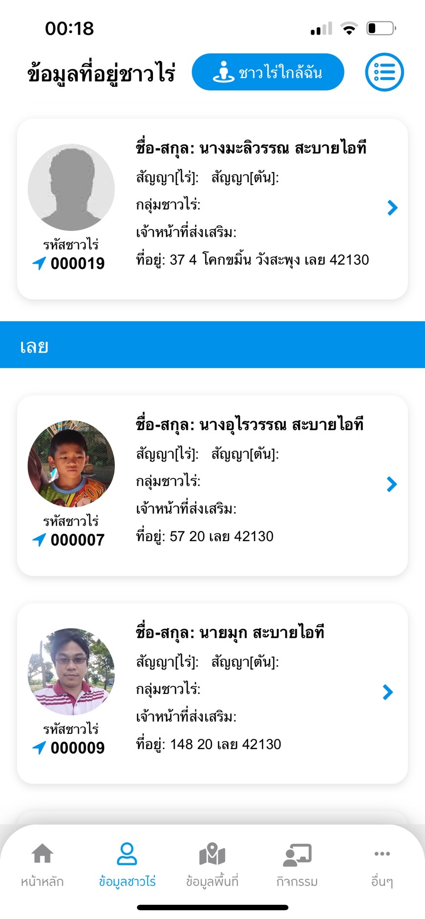 สามารถสลับรูปแบบในการแสดงที่อยู่ของชาวไร่ [แผนที่/รายการ] |